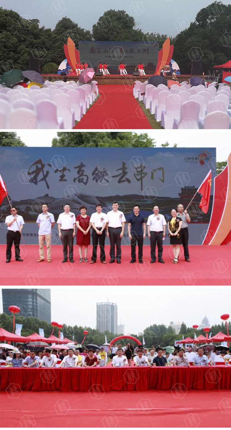 6月26日上午,杏花公園群眾廣場彩旗飄揚,人頭攢動,由江西省旅游委員會、南昌市人民政府主辦,南昌、九江、景德鎮(zhèn)、撫州市旅游委員會協(xié)辦的“坐著高鐵去串門”旅游聯(lián)合營銷熱烈進行。南昌市人民政府副市長凌衛(wèi)、副秘書長萬里菲,南昌市旅游委主任陳清華,合肥市人民政府副秘書長謝軍,合肥市旅游局局長完顏紹建等領導出席活動。