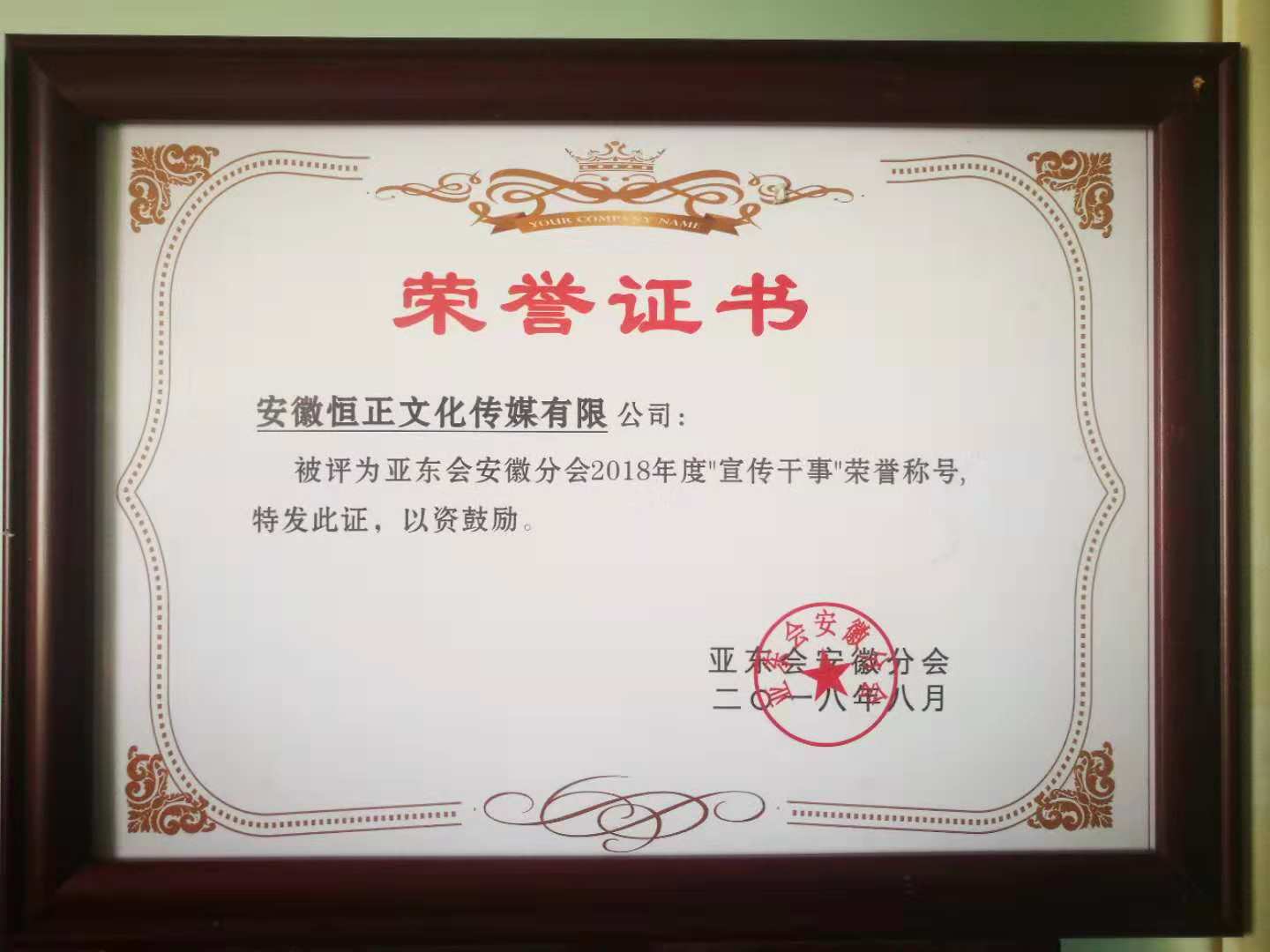 證書頒發(fā):安徽恒正文化傳媒有限公司獲得亞東會(huì)安徽分會(huì)會(huì)員單位、亞東會(huì)安徽分會(huì)2018年杰出貢獻(xiàn)獎(jiǎng)、亞東會(huì)安徽分會(huì)宣傳部干事、亞東會(huì)安徽分會(huì)綜合管理部成員等等。感謝亞東會(huì)安徽分會(huì)對(duì)恒正傳媒的支持與信任。