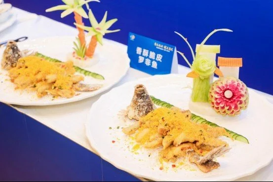 在茂名羅非魚菜肴創(chuàng)新品鑒會環(huán)節(jié),邀請到皖菜大廚們以煎、炸、燒、煮、燜等各種烹飪方法,烹制各種羅非魚塊、魚片、一魚多吃等多種皖粵風(fēng)味美食,展現(xiàn)了一場鮮、香、爽、脆、嫩的羅非魚盛宴,與會嘉賓們品鑒后贊不絕口!